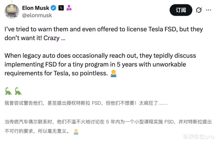 2023 年,他再次强调:“我们愿意把 FSD授权给任何车企。”
