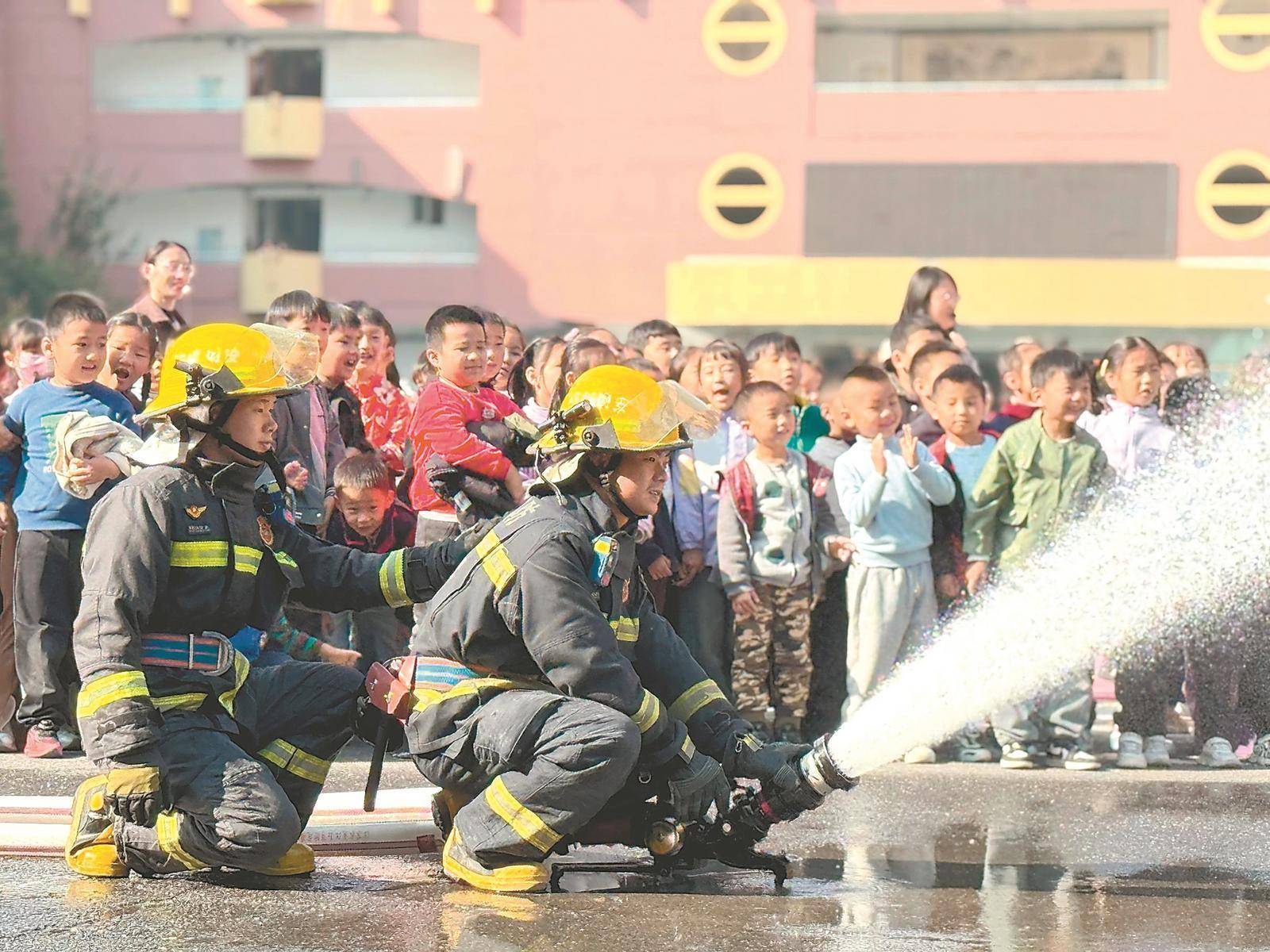 11月5日,合肥市瑶海区消防救援局组织消防员走进辖区行知小学开展“消防安全进校园”主题活动,向学生们普及消防安全知识,提高应急避险能力。本报通讯员 熊伟 黄刚 摄