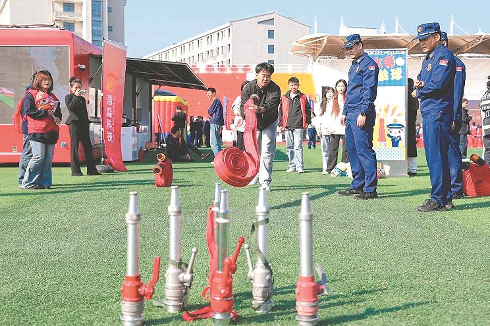 11月5日,2025年滁州市119消防宣传月启动仪式在滁州城市职业学院举行。活动现场精心设置了消防科普讲解区、装备展示区等,吸引了师生踊跃参与。本报通讯员 冒家云 摄