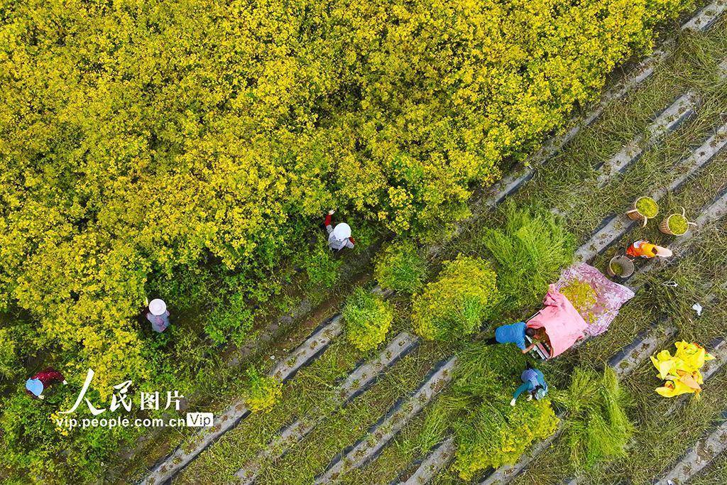 时下,重庆市黔江区邻鄂镇松林村菊花基地人工种植的野菊花盛开,村民们抢抓农时采收,交售企业,实现增收。